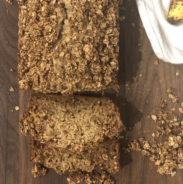 Banana bread is a great way to use ripe bananas and allows for a quick breakfast or snack on the go. I love banana bread but was getting tired of the same classic recipe. In order to give my banana bread a twist, I add granola. It creates a nice crunch in every bite and adds another level of flavor and texture.